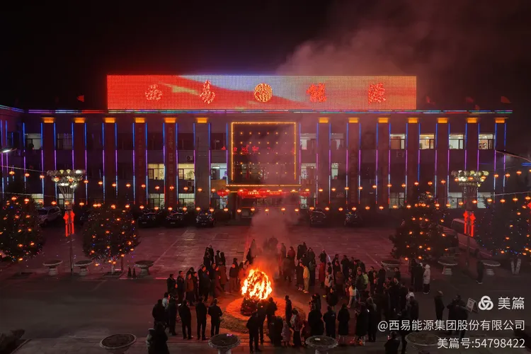夜幕降臨,西易工業(yè)園區(qū)公司辦公樓前旺火旺氣沖天,道路兩側火樹銀花、彩燈高懸、霓虹閃爍、燈火通明,園區(qū)當街人山人海,歡歌笑語,一派燈火輝煌、繁榮興旺景象。